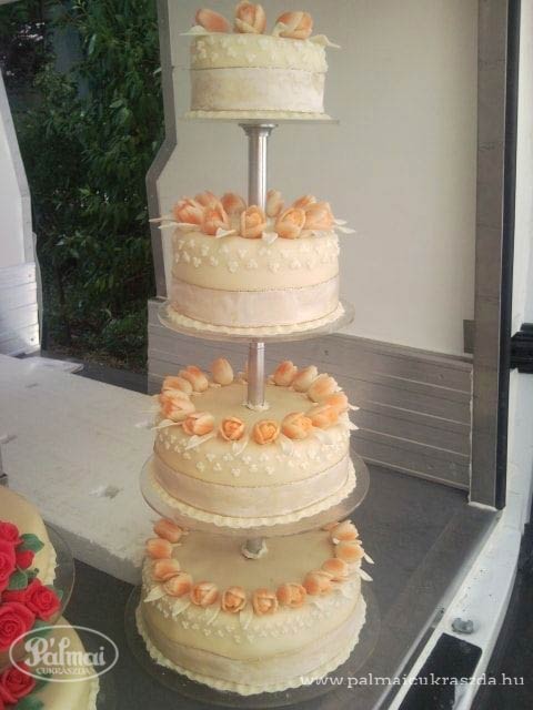 A rendelés mennyiségétől függően bizonyos érték felett százalékos kedvezményt biztosítunk. Állványos torták esetén -néhány kivétellel- felár nélkül, akár mindegyik torta különböző ízű lehet. A szeletár tartalmazza a marcipán-burkolás, szegélydísz (kivétel a fodor) és a cukorgyöngy díszítés árát is! A marcipán virág ebben az esetben közepes, leveles rózsára vonatkozik. A kiszállítás ára függ a rendelés értékétől.